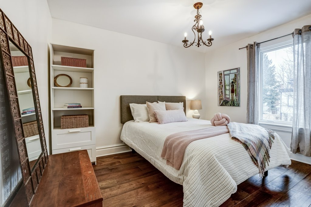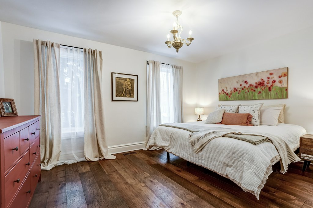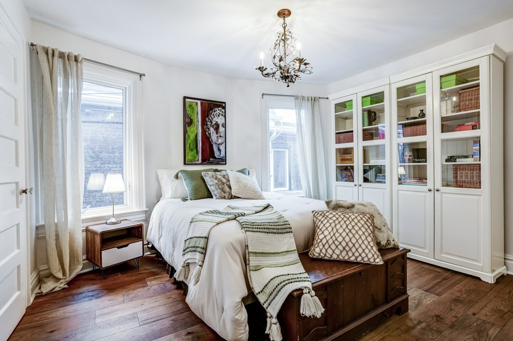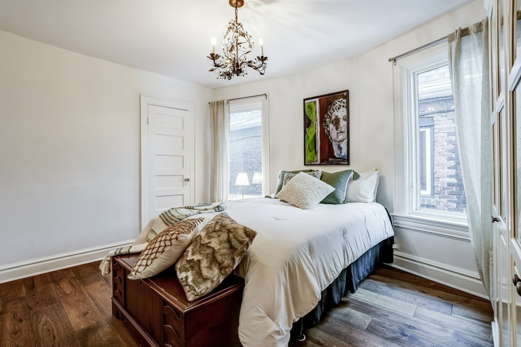 The upstairs in this home doesn’t fail to impress either and features not one but 3 large bedrooms with hardwood flooring throughout, a renovated bathroom, soaring ceilings and a view of the CN Tower!